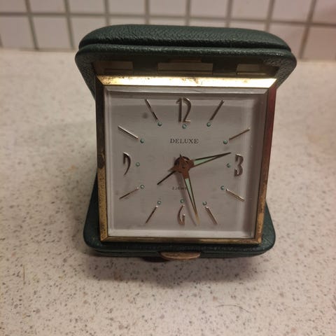 Mekanisk reiseur av merket Deluxe fra midten av 1900 tallet .