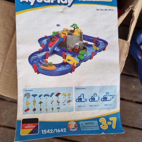 Vannbanen er egnet for lek med vann utendørs eller i større kar, og passer for barn som liker rollelek med båter og vannstrømmer. Produsenten oppgir anbefalt alder fra 3 år og oppover. Brukt bare 2 ganger, hentes på Bjørkelangen.