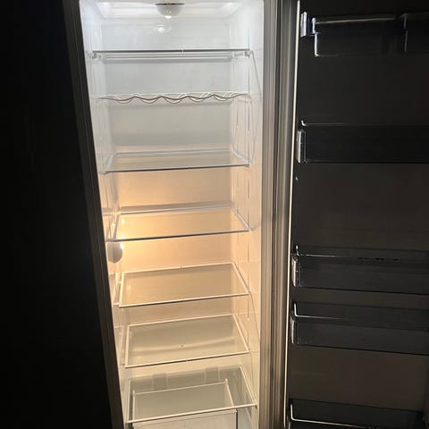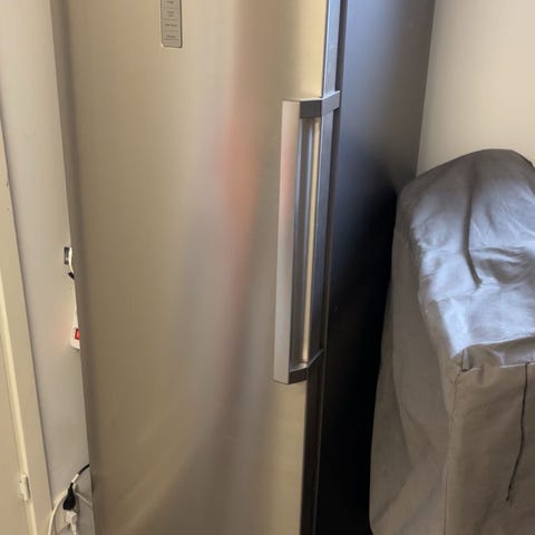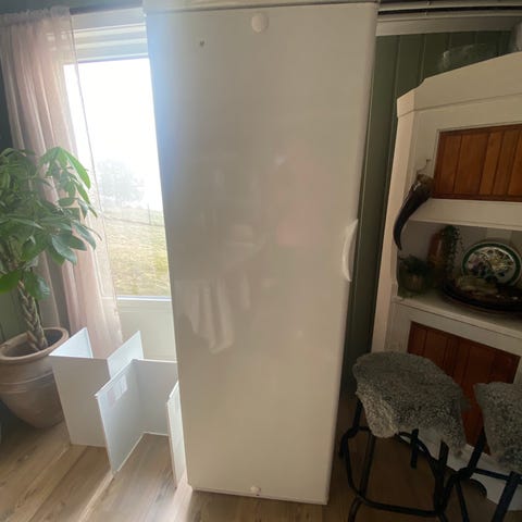 Samsung kjøleskap. Kjøleskapet har flere justerbare glasshyller, grønnsaksskuff nederst og egen hylle for flasker/vinflasker. Innredningen gir god oversikt over matvarene, og døren har glatte flater på innsiden. Egnet som frittstående kjøleskap på kjøkken.
