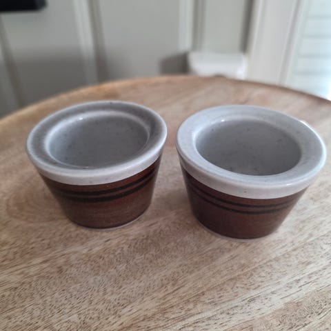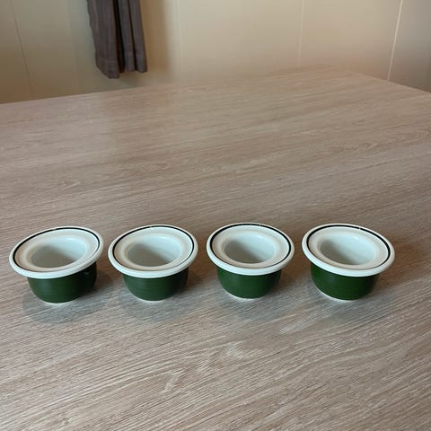 Selger 4 eggeglass/ eggkopper, eggeglassene er i Arabia Finland, Karelia-serien, designet av Anja Jaatinen-Winquist i 1970-årene.