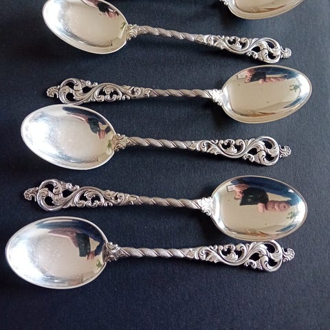 Vår sønn som nå er voksen mann, har i mange år fått sølvtøy i gave av nær familie helt siden han ble født, men han har aldri vist interesse for det. Nå har han bedt meg om hjelp til å selge alt han har. Prisen er rundet av til cirka en fjerdedel av nypris pr stk.