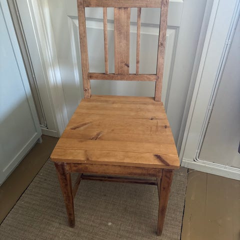 Gir bort 4 stoler. Det er godt brukt med litt bruksmerker som vist på bilde. Følger med 3 puter om ønskelig.