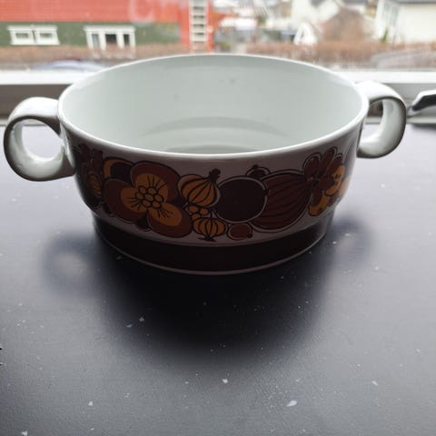 Brukt og litt krakelering. Spesielt lokket og ene skålen. Morsom produksjonsfeil på ene skålen. Fant ingen hakk eller synlig sprekker/skader. Må hentes.