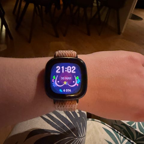 Fitbit sense 2 med lader og grønn justerbar reim selges.