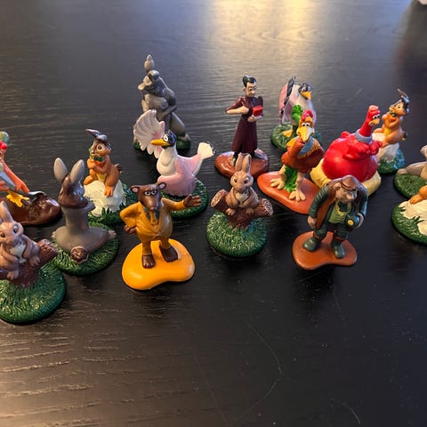 Ulike figurer, høyeste er ca. 4,2cm. I alt 22 figurer. . Selges samlet for 75kr. Porto i tillegg.