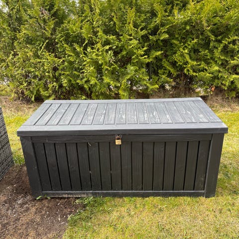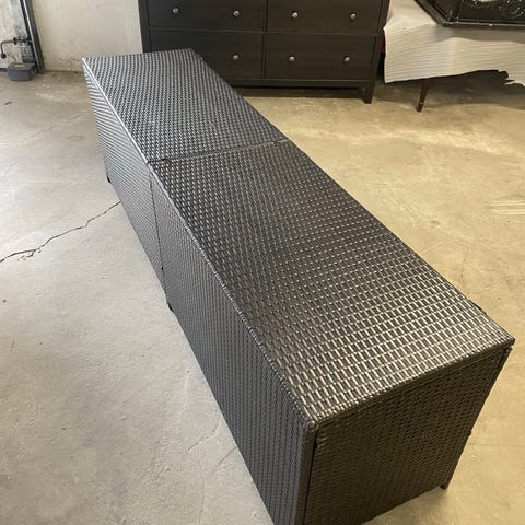 Kassen har lokk med gassdemper og innvendig plate i bunnen. Egnet til oppbevaring av puter, tepper og annet tilbehør til hagemøbler. Yttertrekket i kunstrotting er tilpasset utendørs bruk på terrasse eller i hage. Nettopp vasket