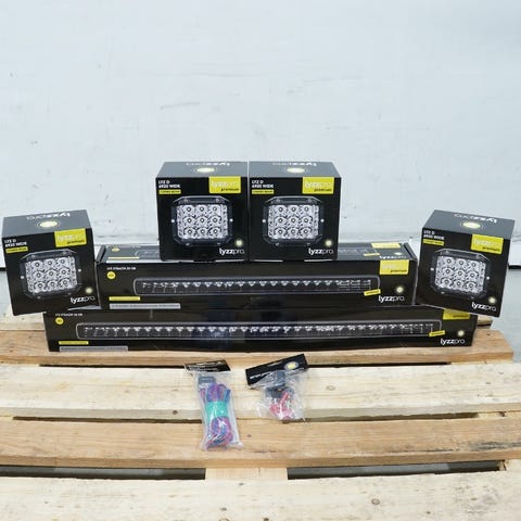 Parti med LYZ Stealth LED-barer og arbeidslys i flere størrelser. Serien inkluderer 7”, 13” Double Row med blitz/posisjonslys, 20” offroad samt kompakt Cube SP arbeidslys. Alle modellene er utstyrt med Osram LED, 5700K fargetemperatur og driftsspenning 12–24V DC. Robust konstruksjon med IP68 (utvalgte modeller også IP69K) og flere ECE-godkjenninger avhengig av modell.6 Stk LYZ Stealth 7 OR LED-Bar