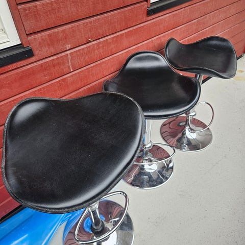 To tøffe barstoler med imitert skinn-sete.