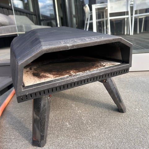 Selger en FCC Pizza Maestro gassdrevet pizzaovn med elektrisk roterende pizzastein. Ovnen er pent brukt og fungerer som den skal.