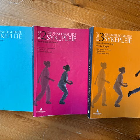 Grunnleggende sykepleie bind 1,2 og 3. selges samlet. Kan ikke se noe merker på eller i boka. Ikke skrevet i boka.