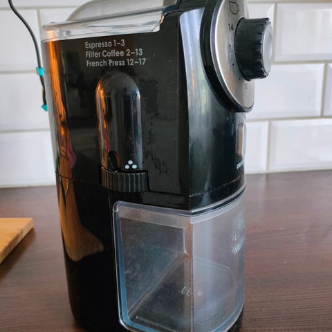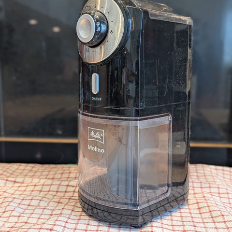 Kjøpt ny fra Kitch’n Hamar for en uke siden. God kvern til presskanne, kokekaffe og filterkaffe, egner seg ikke til espresso, derfor selges den. Kun brukt et par ganger. Alle avtagbare deler kan vaskes med såpe og vann. Beholder for hele bønner og for ferdigmalt kaffe. Kan male for fra 2 - 12 kopper kaffe om gangen. Malegrad kan innstilles.