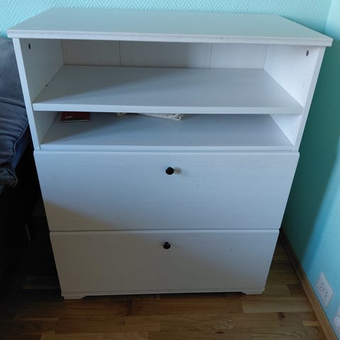 Hvit hylle selges.