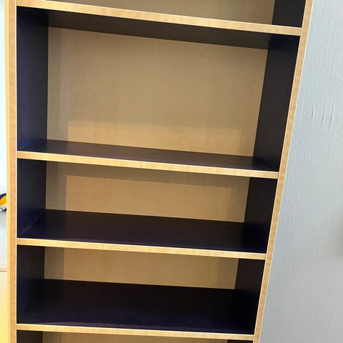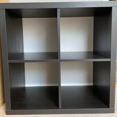 Litt merker her og der men ser veldig fin ut når den står montert. Kan muligens medfølge noen «bokser» i stoff som settes inni rommene/hyllene.