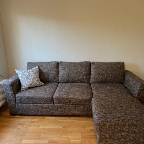 Vi selger en meget god sofa, med en puff som man kan legge på begge sider på sofaen, som gjør at det er fler muligheter til å piffe opp stuen. Sofaen er veldig behagelig og pen.