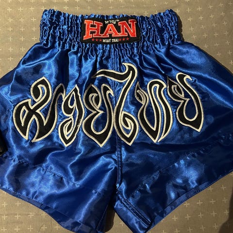 Ubrukt og uvasket muay thai / Twins shorts. Denne er XL men kan justeres mye i livet. Jeg er vanligvis 32/33 / 50 / L / XL og denne passer meg bra. Er du mindre passer den nok fint til Medium også