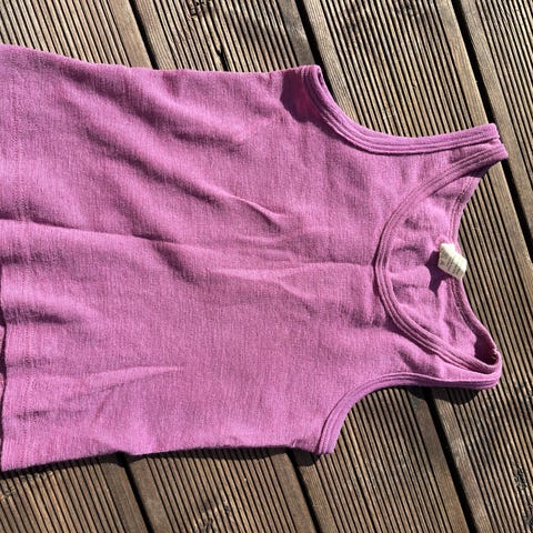 Synlig brukt, men i fin stand. Tråer gått opp rundt livet. Står str 140, men vil heller si fra ca 6 år og oppover...70 % ull, 30 % silke.