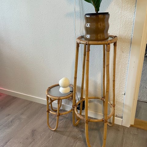 IKEA plantebord i tre med hvite runde hyller.