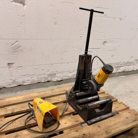 Pullertvinsj med fotbryter, montert på grunnramme. En fleksibel løsning for mange bruksområder.