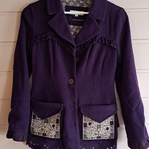 En utrolig nydelig strikkejakke/ kåpe fra ODD MOLLY i str. 1, passer en str. S/XS. Kåpen har mange flotte detaljer og er varm og god. Jakken er i ull og polyester 50/50.
