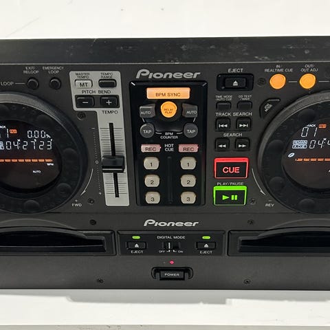 Gemini CDM-4000BT DJ-kontroller med innebygd dobbel CD-spiller. Enheten har to joghjul, mikserseksjon med flere kanaler, EQ-kontroller og fader. Fronten har to CD-skuffer samt tilkoblinger for hodetelefoner og mikrofon. Kontrolleren er egnet for miksing av musikk fra CD og andre tilkoblede lydkilder i hjemmestudio eller for mindre arrangementer.