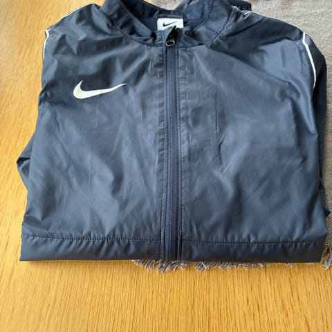 Nike Dri-Fit hettejakke for barn i størrelse 147-158cm.Jakken er laget i polyester med myk innside og har standard passform (L, 147–158 cm ifølge lappen). Farge gråmelert med oransje Nike-logo på brystet og mørk glidelås i front. Modellen har hette og to frontlommer. Egnet til hverdagsbruk og ulike fritidsaktiviteter.