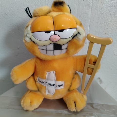 Selges en vintage Garfield figur i plysj. I veldig god stand for alderen, ble aldri brukt. Høyde og bredde er ca 17cm.