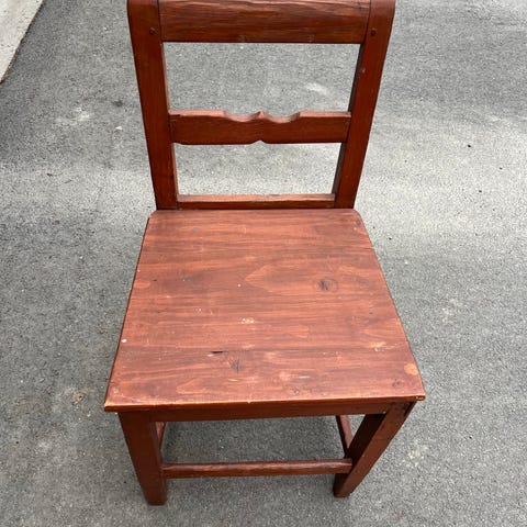 Selger stol og krakk av gammel årgang. Umalte møbler som trenger pleie og maling.