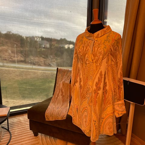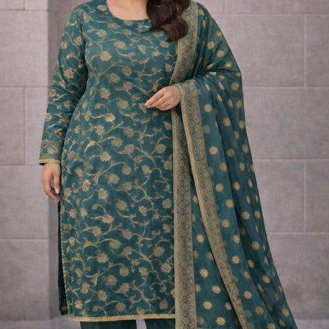 Raw silk overdel og bukse. Organza sjal/duppatta.