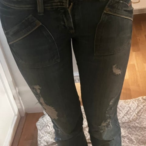 Kjempekule jeans jeg kjøpte secondhand for en stund siden. Selges dessverre fordi de er alt for trange rundt rumpa og midjen. Jeg bruker størrelse s-xs i jeans for reference, så de er ganske små.