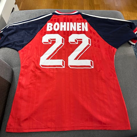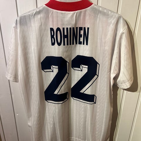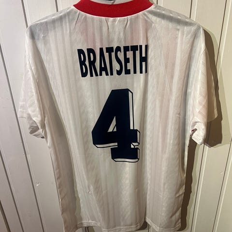Bortedrakt fra 98 med Reka. Flott tilstand. 1 liten pull. Det er mindre 98-bortedrakter i omløp enn hjemmedraktene. Str L.