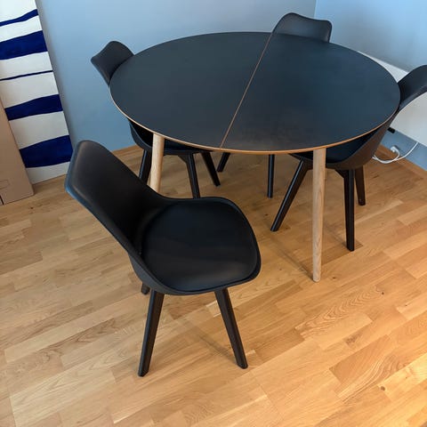 Rundt spisebord med 5 stoler – klassisk og pent