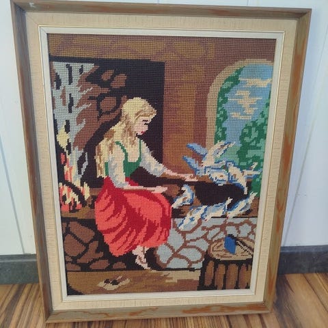 Vintage broderte veggbilder i ramme – selges samlet