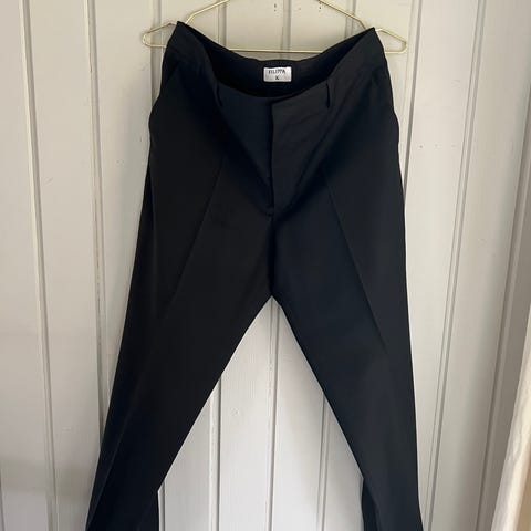 Filippa K dressbukse for dame i størrelse 40. Buksen er svart og laget i ull. Klassisk modell med beltehemper, knapp og glidelåslukking foran. Står dry clean only, men jeg ha vasket den på håndvaskprogram uten problem :)