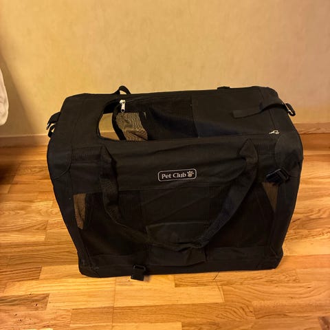 Selger en praktisk transportveske fra Pet Club, kjøpt på Rusta i høst. Vesken er perfekt for katt eller mindre hunder/valp. Vesken har primært blitt brukt til valp i noen uker som bur/hvilested. Mål: 50 x 30 x 35 cm. Vesken er i god stand med noen få bruksmerker.