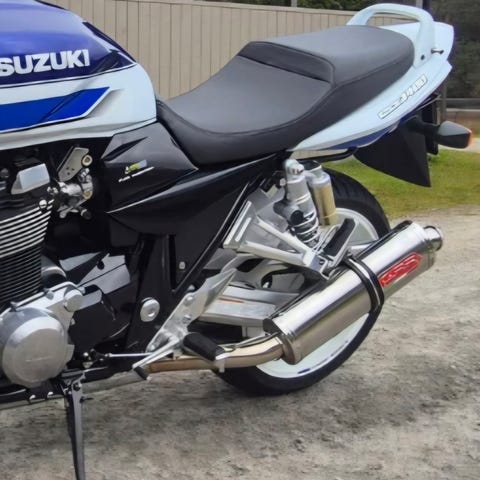 Deksel til Suzuki GSX 1400 2003 modell. Denne har en skade på høyre side foran som bør repareres. Ingen fester er skadet.