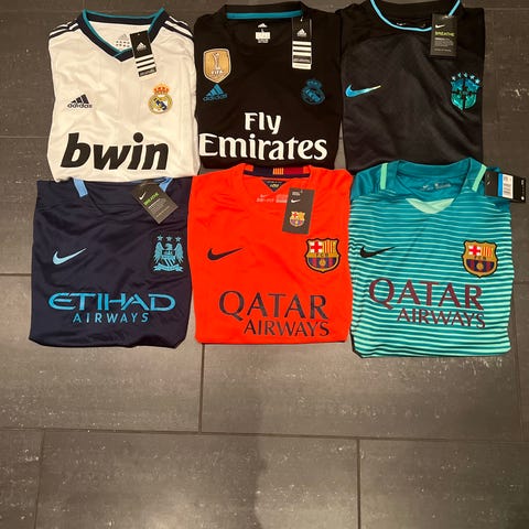 2021/2022 psg drakt med Neymar. Jr på ryggen. Og Barcelona treningsdrakt fra 2024/2025 sesongen