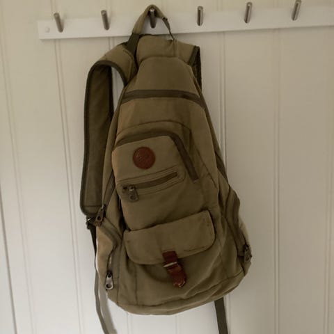 Sekken er godt brukt og bærer preg av alder (slitt). Den har sjel og patina, noe som bare gjør den mer autentisk for deg som liker den røffe retro-stilen. Perfekt som festivalsekk eller til hverdagsbruk for en som ikke er redd for litt bruksslitasje.