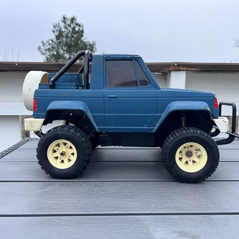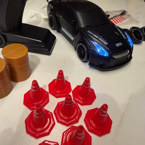 Den er perfekt som bursdagsgave eller gave til barn. Bilen kan kjøre opptil 20km/h og følger med 2 par dekk (1 par for drifting), og utstyr til å lage eget bane.
