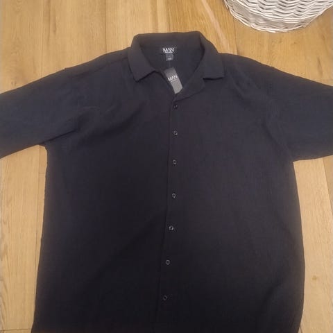 Ny svart skjorte, kvalitetsmateriale, passer perfekt