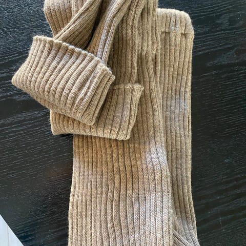 Ribbestrikket ullbukse fra MeMini, 80% ull og 20% polyamid. Litt nupper, ingen hull eller flekker.