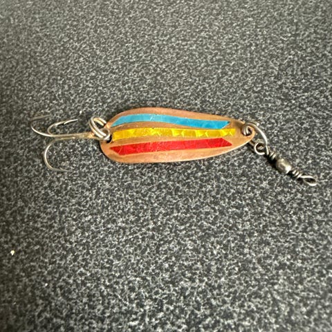 ABU Toby sluk for fiske. Sluken har klassisk fiskesluk-form og kommer i to varianter, én i kobberfarge med pregede detaljer og én i sølvfarge med skinnende overflate og røde detaljer bak. Begge slukene er utstyrt med svivel i front og treblekrok bak. Egnet til fiske etter ulike rovfiskarter i både ferskvann og saltvann, avhengig av vekt og rigging.