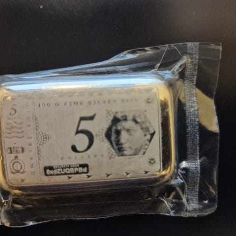 Silverbullion coinbar. 5 dollars sølvbar 100 g