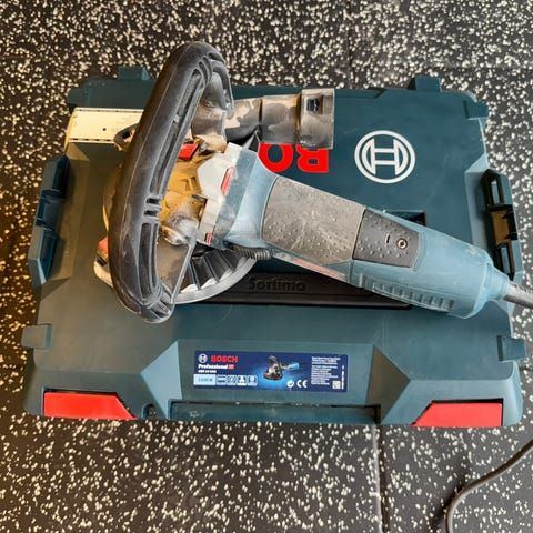 Bosch GEX 150 Turbo eksentersliper. Elektrisk nettdrevet maskin med ergonomisk håndtak og gummiert grep. Leveres i formstøpt koffert med plass til maskin, kabel og tilbehør. Egnet for sliping og finsliping av ulike overflater som tre, metall og lakk med passende slipepapir og puter. Kofferten gir beskyttelse og enkel transport og lagring av verktøyet.