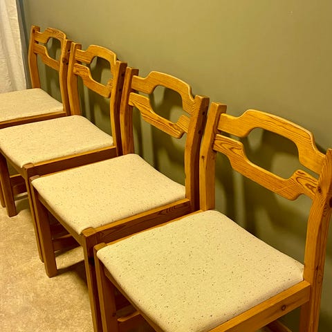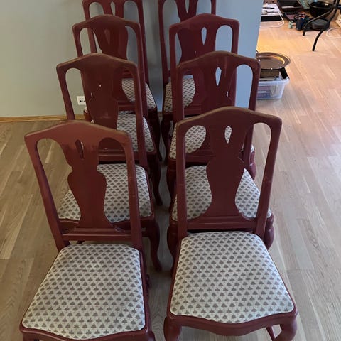 5 stk. spisestuestoler gis bort. Disse er fra Italian House. De er godt brukt og trekk anbefales å bytte ut.