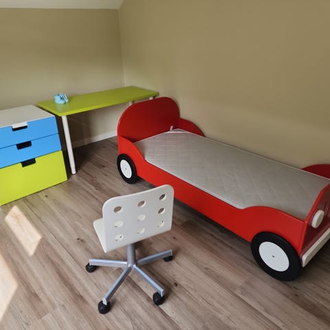 IKEA enkeltseng barneseng med sengehest. Sengen har ribbebunn i tre og sengehest på siden for økt sikkerhet. Passer til standard madrass for enkeltseng til barn. Egnet som fast seng på barnerom eller gjesteseng til barn. Madrasser på bildet følger med om ønskelig.