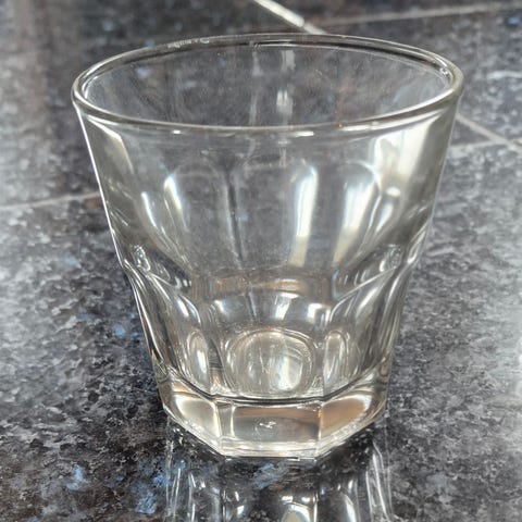 Hadeland Glassverk glass med dekor langs kanten i gjennomsiktig glass. Glasset har lett utsvingt form og rund fot/base uten stett. Egnet som drikkeglass til vann, juice eller andre kalde drikker. Klassisk mønster rundt øvre del av glasset gir et dekorativt uttrykk på bordet.