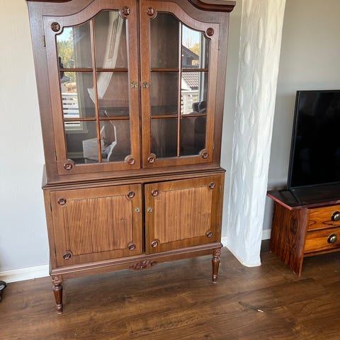 Spisestue og vitrineskap i eik