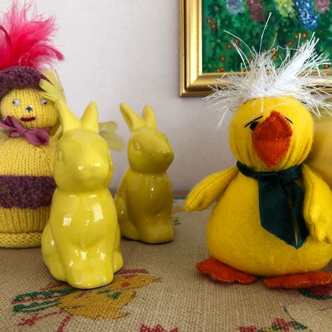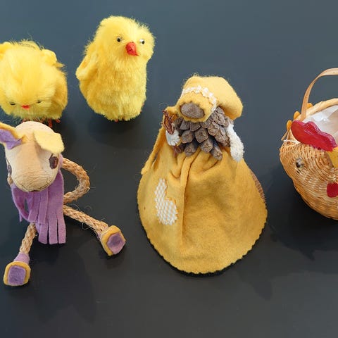 Påskepynt med 4 kaniner – dekorfigurer - gis bort