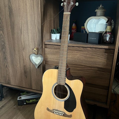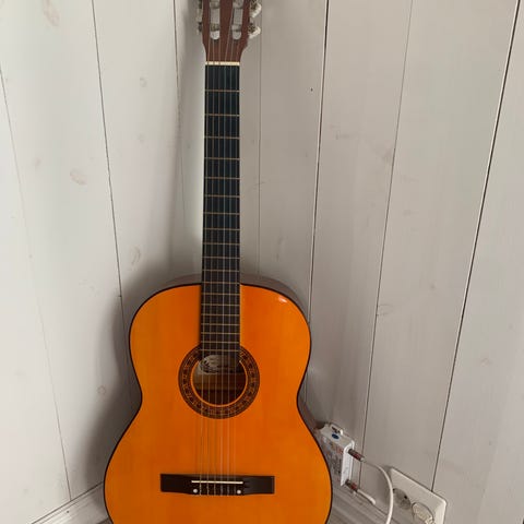 Gear4music D1BNT akustisk gitar i dreadnought-form. Kropp i naturfarget treverk med blank finish og mørkere bakside og sider. Gitaren har seks stålstrenger, gripebrett med båndmarkeringer og stemmeskruer i metall. Passer til generell bruk som øving, akkompagnement og enkel konsertbruk for både nybegynnere og viderekomne gitarister.