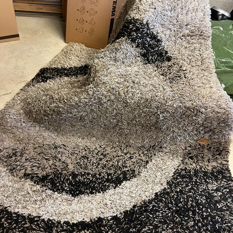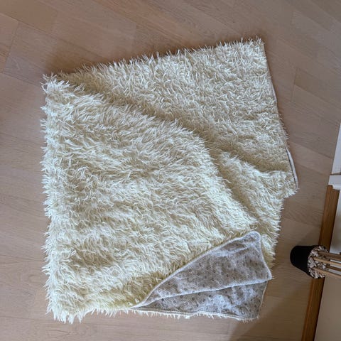 Fluffy teppe, offwhite i farven.